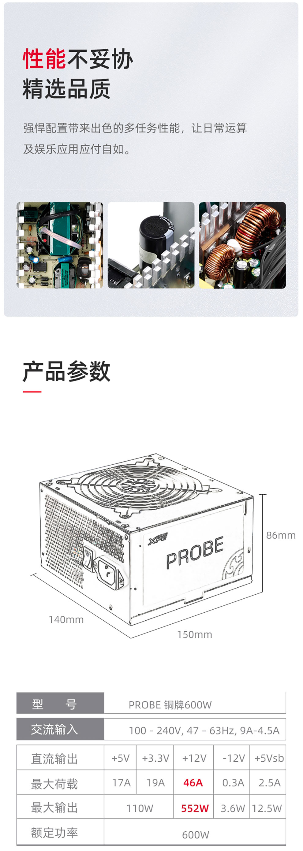 威刚(ADATA)XPG铜牌电源 额定600w